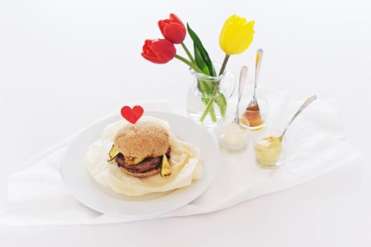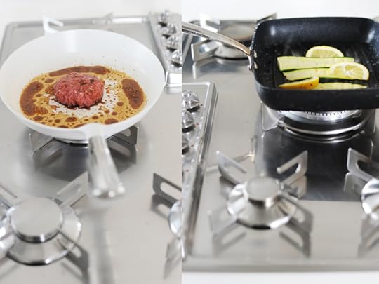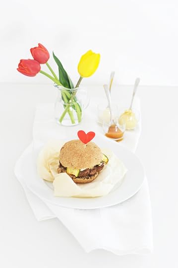 Panino (a lievitazione lentissssima) con farina integrale di Tumminia, semi di lino, semi di chia e girasole con Hamburger di vitello insaporito da miele Manuka, senape di Digione e salsa Worcester con zucchine grigliate (ma non troppo) al limone e maionese (con uova di galline allevate a terra).