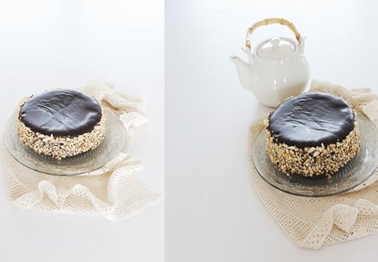 Ricopri la torta e chiudi con nocciole o mandorle tritate secondo la tua fantasia decorativa.