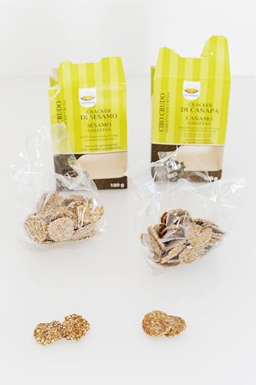 Acqua, ossigeno, calore e luce che fa germogliare i semi. Molte proteine, carboidrati e grassi (dovuti all’oleosit�� dei semi). I “cracker” di Canapa che dicono essere dal gusto delicato con il 2,5% di farina di canapa li ho trovati eccessivamente amari e di un gusto non particolarmente accattivante. Al contrario di quelli di sesamo, che pur dovendo essere leggermente piccanti, il cui sapore ho trovato buono e piacevole. Sono prodotti raw e naturalmente bio. Piccoli crackers interamente composti da semi di lino dorati, sesamo germogliato e grano saraceno. Un po’ di semi di papavero e sale. Le calorie (sono una stupida, credevo di aver conservato la confezione ma ahim�� non �� cos��. Li ricomprer�� e far�� la specifica della tabella nutrizionale) sono generose in quanto semi, ma diventano ottimi e salutari snack da tenere da parte per uno spuntino leggero e saziante (i semi infatti hanno questo incredibile potere di tamponare i morsi della fame egregiamente). Ne esiste anche una versione dolce con grano saraceno, fichi, uva passa e semi di lino che ho trovato deliziosa (436 Kcal per 100 grammi che �� poi l’intera confezione). Un ottimo dolcetto con grassi 19,62 – fibre 10,22 – carboidrati 54,36 – proteine 10,53.