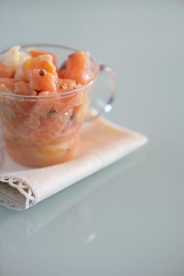 Tartare al salmone con arancia, pompelmo e senape in grani