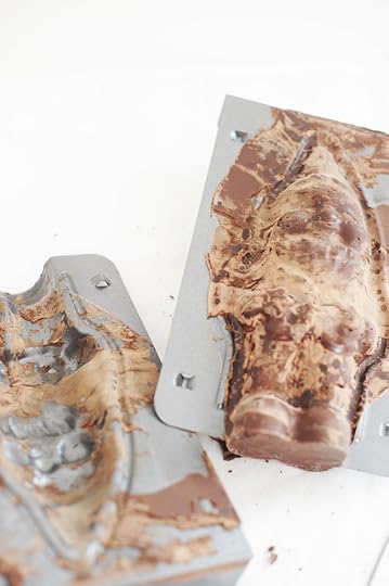 Il Nippotorinese, cacciatore di nani in tutto il mondo, l’ha scovato su Amazon UK (o America? Non se lo ricorda nemmeno lui). Non pu�� andare in forno ma grazie a potenti amicizie forse sar�� in grado, grazie a questo medesimo stampo, di ricavarne una versione in silicone (il sogno di una vita, insomma). E’ semplicissimo. Un po’ la classica tecnica dell’uovo di pasqua. Due parti, tenute ferme da un’asticella. Non ho provato a spennellarle e poi farne una versione componibile vuota all’interno ma sono partita proprio con un bel malloppotto di cioccolato enorme. Per intenderci qui ce ne sono 750 grammi circa. Stupidamente non ho messo una mano o un metro di paragone ma vi assicuro che piccolo questo Nano non ��, anzi tutt’altro. Essendo questa la prima volta e prova non ho strafatto. Solo sciolto la cioccolata, imbottito ben bene lo stampo, lasciato raffreddare e via.