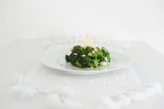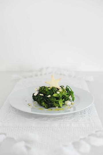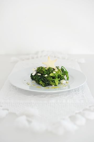 Ho scelto questo piatto perch�� �� il risultato di una risata. L’altro giorno ho bollito i broccoli e poi li ho cosparsi di scorza��grattugiata. Mi piace sempre tanto sentirmela scricchiolare tra i denti con tutto quel succo di limone e tanto sale rosa. Ho detto a mamma “mi passi il tofu?”. Perch�� broccoli e tofu a volte mi piace. Non sempre. Lei arriva e sbam! Mi sbriciola sopra due chili di feta.��Rimango l�� con la stellina di frolla salata in mano che faceva da coreografia a questo piatto ma che non avrei mangiato. La guardo interrogativa e le dico “ma quella �� feta mamma! E’ un derivato animale!”.