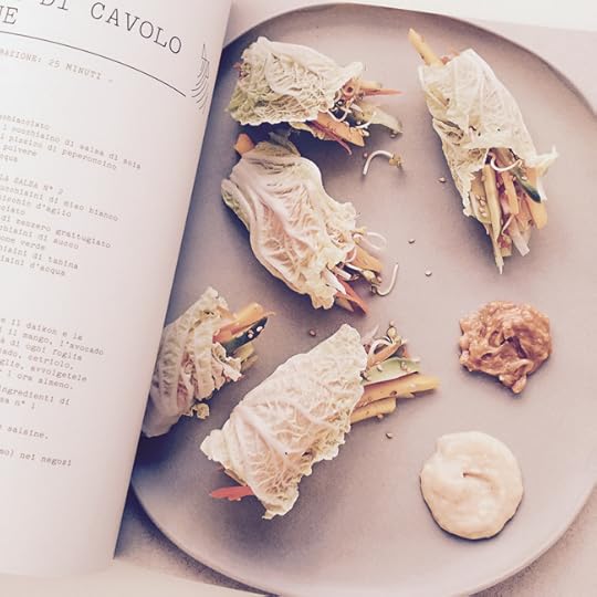 Si parte con le zuppe (uno dei miei capitoli preferiti) e con la prima giuro amore eterno a Delphine. Zuppa verde ai semi con cetriolo, avocado, zenzero e semi di zucca (e molti altri), Zuppa di spinaci, avocado e zenzero con sesamo nero, Zuppa d’India, Zuppa 3 C con zucchine gialle, verdi, lunghe ��e tonde, cetriolo e olio di sesamo. Gazpacho verde, Gazpacho classico, Zuppa di Cetriolo Noa e Menta, Zuppa energizzante con spinaci, cetriolo, wakame e infinite meraviglie. Partono le insalate con pomodori misti, insalata verde, daikon e salsa thai, barbabietola cruda e pompelmo, insalata cruda e succo di acetosella, carpaccio di verdure, pad thai crudo, sedano e mele grattugiati. E ancora i succhi con green juice in diverse varianti, smoothie dolci e verdi dal sapore salato. Il pesce �� un tripudio per chi lo ama, perch�� nella complessa semplicit�� ci sono davvero piatti incredibilmente belli esteticamente e suppongo pure molto buoni. Come gli scampi crudi speziati, le ceviche di scorfano, il sugarello marinato, lo spada con basilico, pinoli e pomodori. La carne con tartare di manzo, carpacci di vitello e bresaole con pere e cavolfiore. Appena Scottato e Fatto in casa offrono diverse preparazioni facili e veloci irrinunciabili. Il latte di mandorla, il latte di nocciole, la crema spalmabile zuccherata con agave, brodo iodato, tarama fatta in casa, tartare di alghe fatte in casa, finta maionese di avocado e vinaigrette di avocado, arancia e soia. E mi girano le dita e la testa perch�� mi �� venuta una fame pazzesca.