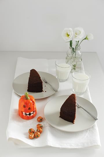 La Torta Mud di Donna Hay risulta sempre vincente mi sono detta mentre Koi mi guardava interdetta con la palla, arancione fosforescente a tema Halloween, in bocca. A lei interessava solo che io la rincorressi dicendole ” ti prendo ti prendo ti prendo”. Koi, labrador miele, dovrebbe essere teoricamente un cane da riporto. Nel dna, oltre al fatto di possedere lunghe ciglia bionde e contorno occhi tipo smokey eyes che Kim Kardashian potrebbe solo che impallidere, dovrebbe esserci questo cromosoma “riporto”. Peccato che non porti indietro nulla. Il cromosoma “distruggo-desintegro” insieme a quello “mangiotuttoqualsiasicosa” forma la sua struttura doppia ellittica (ce ne sarebbe un altro. Il cromosoma “giochiamoQUANDOLODICOIO”, altrimenti detto Cromosoma Casella, in gergo). Dico di Koi perché l’intenzione era tutta un’altra e non certamente questa della torta insanguinata. Decisa la base, ricaduta poi nella Mud Cake appunto, avrei dovuto costruirci sopra qualcosa di diverso. Peccato che sola in casa, con il Nippo in trasferta e Mamma e Pina intente a fare altro mi sono ritrovata sola con questo essere malvagio dal dna distruggo-mangio-giocoquandodicoio che ululava dalla porta frignando, piangendo, latrando e ringhiando non necessariamente in questo ordine. L’istinto omicida ha prevalso (oh pure io non è che abbia un dna perfetto) e per la fretta di realizzare la decorazione per poi uscire sul terrazzo a giocare e placare la belva ho fatto semplicemente glassa e quattro schizzi di sangue e via. Foto. Finita.