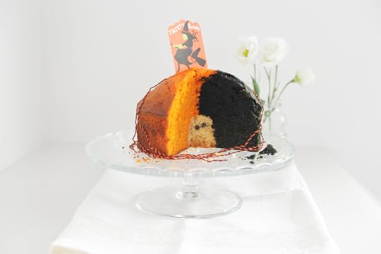 La Ghost Cake pubblicata Venerdì è stata molto apprezzata e la cosa mi ha reso estremamente felice. Oltre a questa versione, che ribadisco rimane in assoluto la cosa più kawaii e tenera che mi sia piaciuta quest’anno, ho voluto provarne un’altra. Un po’ più tetra e con i colori bandiera della festa, ovvero arancione e nero. L’impasto è sempre quello con i bicchieri di plastica (che trovi qui) mentre il metodo è sempre quello della “Ciambella dentro la Ciambella”- “torta nella torta” (che trovi spiegato in versione zucca qui, step by step con percorsi fotografici)