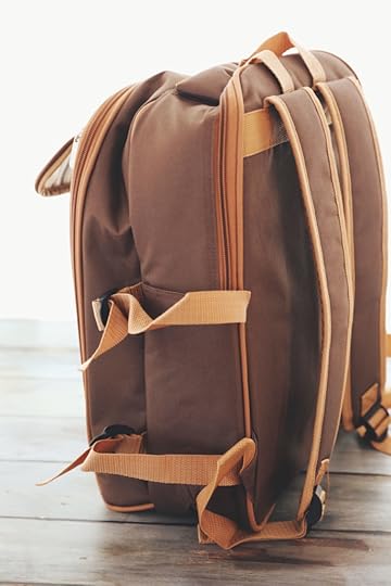 Ti dico subito che con lo zaino puoi davvero fare un picnic di tutto rispetto. Il cibo ci entra e anche parecchio se opportunamente messo in contenitori. Ha diversi scomparti e tutti perfettamente organizzati. Già il fatto di poter tenere ancorato il plaid lateralmente ci fa guadagnare tantissimo spazio, senza contare il fatto di averlo a portata di mano subito perché tutte le manovre di organizzazione vanno fatte proprio dopo averlo steso sul prato. Questo è uno zaino per quattro però onestamente tutto quello che è da quattro lo classifico come per due in questo caso. Perché un piatto in più può servire e con due coltelli, due cucchiai e due forchette d’avanzo non si deve stare a pensare alle posate extra per prendere eventualmente il cibo, tagliare la frutta e tutto quello -senza bisogno di ulteriori esempi- che può capitare a tutti durante un pasto. Ci sono anche i tovaglioli – in un tema che ricorda vagamente Burberry e lo scozzese in genere- di stoffa che trovo molto chic perché il picnic, diciamolo, è tremendamente chic e trasformarlo in una scampagnata disorganizzata è un attimo. Che per carità bella pure la scampagnata organizzata ma qui vogliamo essere catapultati in quel film drammaticamente romantico, oh.