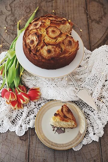 La faccio davvero a occhio ma orientativamente sono tre bicchieri di farina, due bicchieri di zucchero e mezzo bicchiere di olio di semi di girasole. Poi ancora un bicchiere di yogurt naturale bianco non zuccherato (ma anche del formaggio spalmabile fresco) e 16 grammi di lievito (che è una bustina). Della vaniglia o della cannella e poi 3 mele che stiamo intorno ai 500 grammi. Mele sbucciate e private del torsolo con quell’aggeggino fatto apposta in modo che quando tagli le fette rimangono delle lune con un buco intorno. E poi se le poggi nell’impasto, che hai lavorato tutto insieme, formano dei piccoli fiorellini pressandolo un po’ in superficie. Cuoci a 180 già caldo per 40 minuti. Infili lo stecchino per essere sicuri e se vien fuori asciutto la torta di mele per Gandalf è fatta. Puoi metterci sopra lo zucchero a velo. Puoi inzupparla nel tè. Accompagnarla con il latte. E tutto quello che vuoi. Ma soprattutto puoi mangiarne avidamente una fetta leggendo ancora qualche pagina di quest’opera incredibilmente meravigliosa.