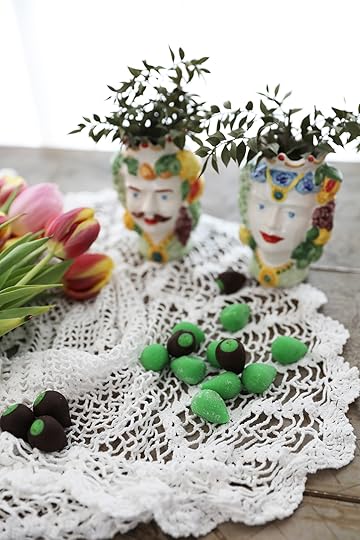 Per 8 persone circa: 250 grammi di mandorle spellate, 150 grammi di zucchero, pochissima acqua e colorante alimentare verde. Zucchero per decorare.