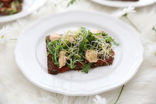 Pizza raw vegan con crema di anacardi, paprika e germogli