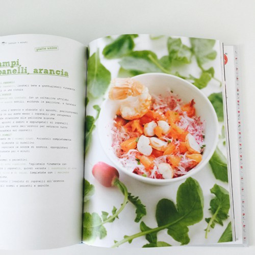 Questo è quello che mi ha confuso e non mi è piaciuto moltissimo ma il resto è: idillio, amore a prima vista e venerazione. È un volume che vale molto più che 20 euro scarsi. Non so quindi esattamente quanto ci sia della dietologa, di Ducasse e di Jérome ma sta di fatto che qualsiasi creativo-chef-cuoco dilettante-cuoco professionista- nutrizionista-team ci abbia messo mano l’ha fatto in modo così perfetto che ti commuovi. Le foto sono molto belle e semplici e non hanno nulla a che vedere chiaramente con chi è abituato agli scatti presenti in libri dove compare il nome di Ducasse. Lucenti, molto bianche e poco gnegnegne. Ravvicinate ma che ti fanno venire l’acquolina in bocca e senza tanti fronzoli “bimbosi”. Non ci sono i cucchiaini con le paperelle per capirci (e un po’ mi dispiace perché mi piace sempre il cucchiaino con la paperella o quello con l’elicottero, uff).