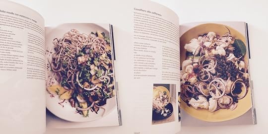 Sfogliatine con lenticchie di Puy e l’immancabile Hummus con ful, Sautè di ceci con yogurt fresco e fagiolini bianchi di Lima con feta, acetosella e sommacco. Zuppa di ceci, pomodori e pane e insalata di cetrioli con aglio pestato e zenzero. I carciofi al limone e quelli con fave schiacciate e gratinate. La minestra di pomodoro e semolino con il coriandolo e le quesadillas. I pomodori con ripieno di erbe aromatiche e i soba noodle con melanzane e mango (che voglio provare prima che subito), la frittata affumicata e la zuppa di cavolo verza e crosta di parmigiano. I cavolini di bruxelles con il tofu (che adoro!!!) e il cavolfiore allo zafferano.