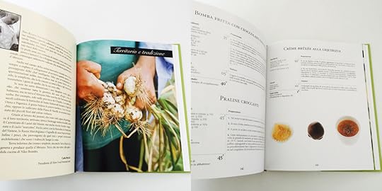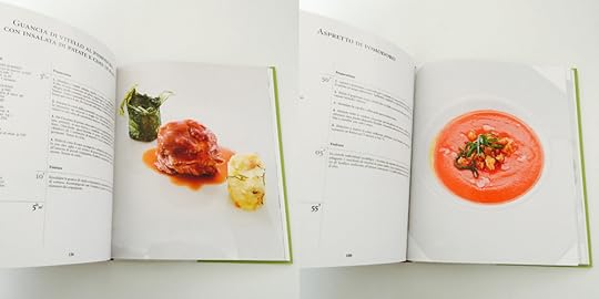 Un libro che costa 25 euro giustamente e che appartiene a una fascia alta. Pagine lisce e importanti anche di consistenza oltre che di contenuto. Da sfogliare e sognare. I suoi piatti vengono definiti con sapori percepibili distintamente ma che fanno nascere una sinfonia totale.