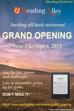 Reading Alley is officially launching and we are marking it in a big way with our Grand Opening event! Take part in a variety of site activities, such as our weekly contests, review challenge and referral program. The more active you are, the higher your chances of winning in our Grand Draw. Lots of irresistible prizes, including an Amazon Kindle and gift certificates, are up for grabs.