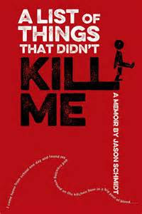 Jason Schmidt’s memoir, A List of Things that Didn’t Kill Me, covers his childhood up to his first years in college. His upbringing is anything but typical: the son of a drug dealer/addict, Jason lives on the fringes of society. He and his father, Mark, move up and down the west coast, striving for a secure and stable environment, but their lives are a series of upsets as Mark is in and out of jail, in and out of relationships, in and out of jobs.