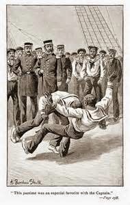 The most striking section of the book (no pun intended) is the graphic depictions of flogging. Melville criticizes the brutality and the arbitrariness of its use – how a captain can flog any sailor under the Articles of War, and the sailor has no redress. Evidently, White Jacket was instrumental in Congress abolishing the use of flogging in the navy.