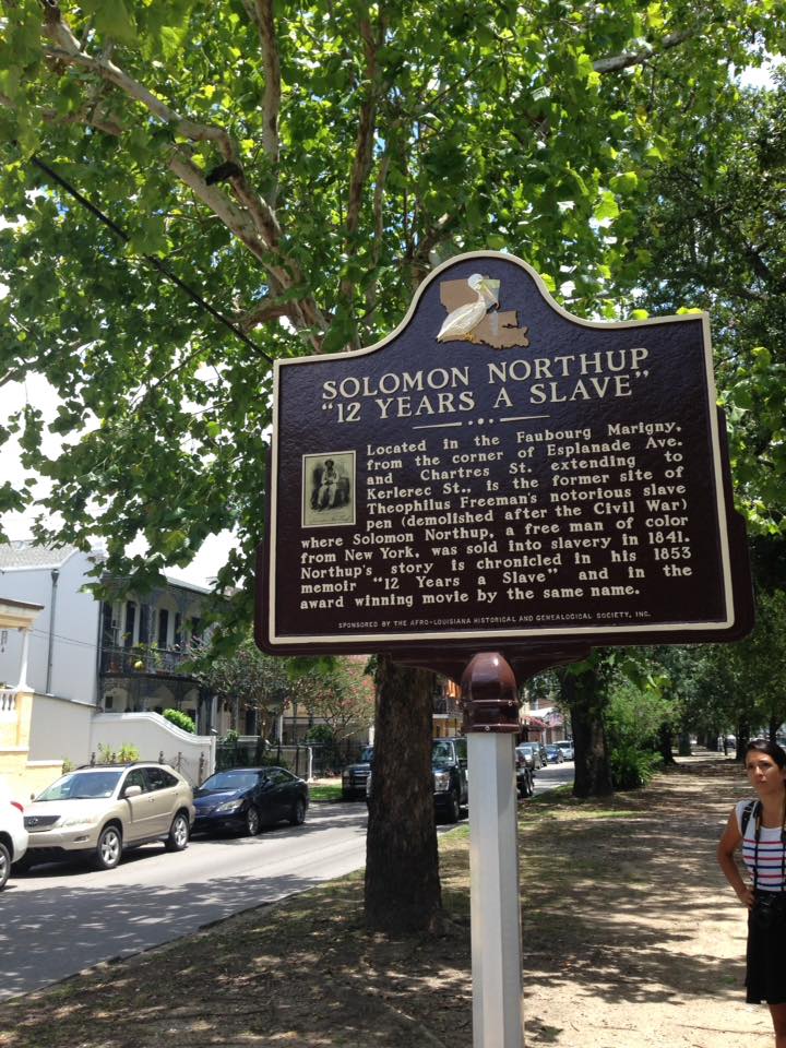 One of my typical treks is down Frenchman Street to Royal. Along the way, I cross Esplanade, a beautiful tree-lined street. According to a historical marker, it was the location of Theophilus Freeman’s slave pen where Solomon Northrup, a free man from New York, was sold into slaveyr (12 Years a Slave).
