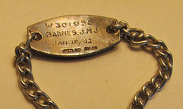 Whose wrist did this lovely little bracelet adorn? The mystery surfaced after I wrote a post called Letters From a Lonely Airman, about a young navigator named Jim Barnes from Battleford, Saskatchewan, who died on a bombing raid over Germany. I asked readers for more information about him, and Emily Tucker of North Battleford sent me this photograph of a bracelet bearing the name "Barnes, J.M.J."