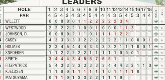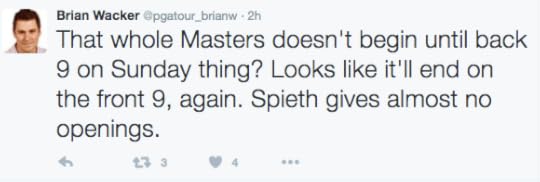Jordan Spieth, the defending Masters champion, made the turn at -7 at clicking on all cylinders making four straight birdies. He had a five (5) shot lead, Complete control!