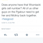 Last week, Rory McIlroy called off the engagement with Caroline Wozniacki. In the immediate wake, their performances have taken dramatically different paths. Rory won the European PGA championship after trailing during the last round by seven (7) shots and he is currently in the lead at The Memorial. On the other hand, 13th seed Wozniacki lost in the first round for the first time at the French Open.