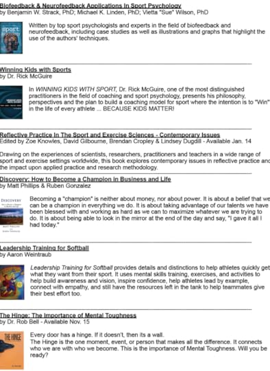 Here are 8 recent Sport Psychology books—-ranging from softball & baseball, leadership, biofeedback, coaching, mental toughness and Sport Psychology practices…