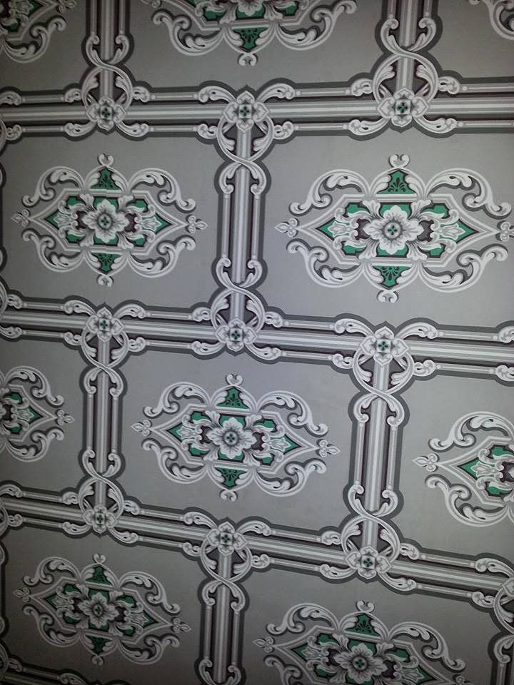 Period reproduction wallpaper. It is unclear what the Lacy's had in their hallway, but wealthy families of the era would have had wallpaper.
