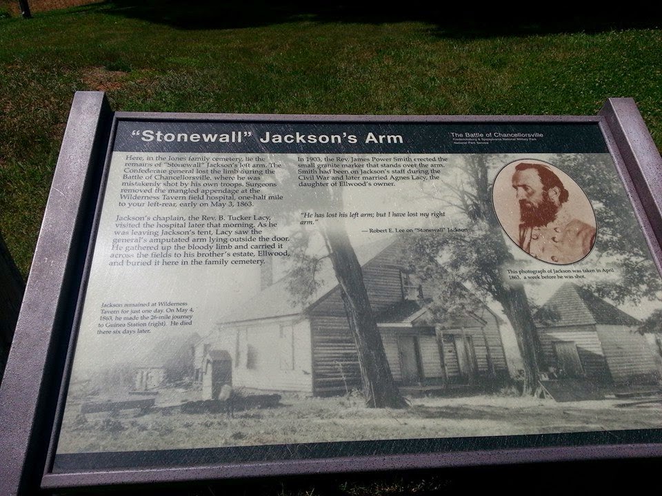 Marker placed in 1903 to commemorate the burial on Jackson's arm. It is not the actual place where the arm is, as several attempts have been made to find the arm at the marker location.