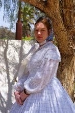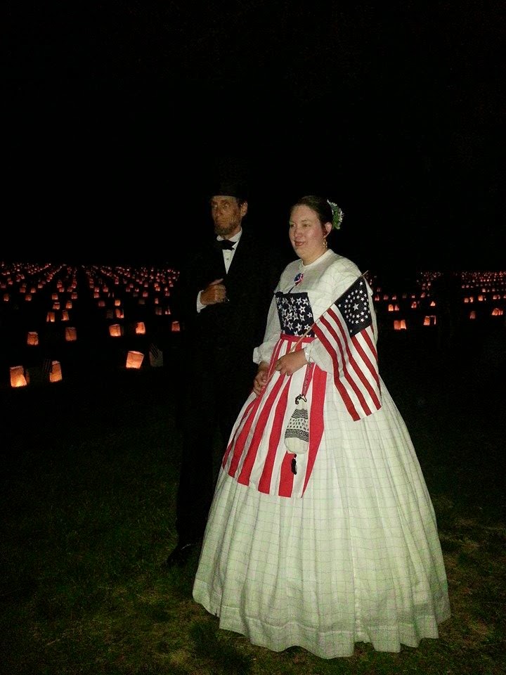 My apron is a reproduction of an original patriotic apron by a Union woman during the Civil War. The original is now on display at the Gettysburg National Military Park Museum and Visitors Center. The flag is also a reproduction of a US Civil War flag.