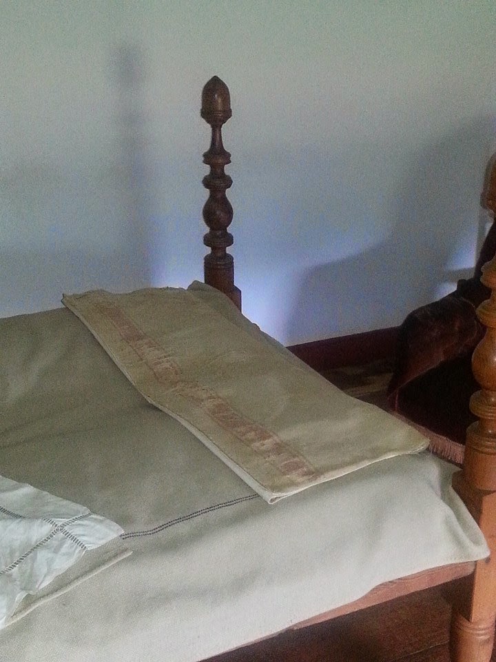 The third original item at the Jackson Shrine is this blanket that is placed on the edge of the bed that Jackson died in. The blanket was on the bed when the general died. It is now only half it's original length because when the Chandler family donated the blanket they cut off a swath as a souvenir.