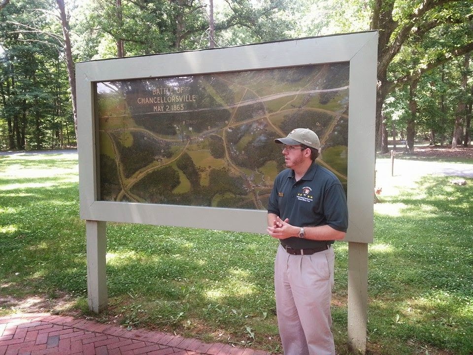 The first photo is summer intern Chuck starting the Stonewall Jackson wounding tour at Chancellorsville, the battlefield is part of Fredericksburg and Spotsylvania National Military Park.