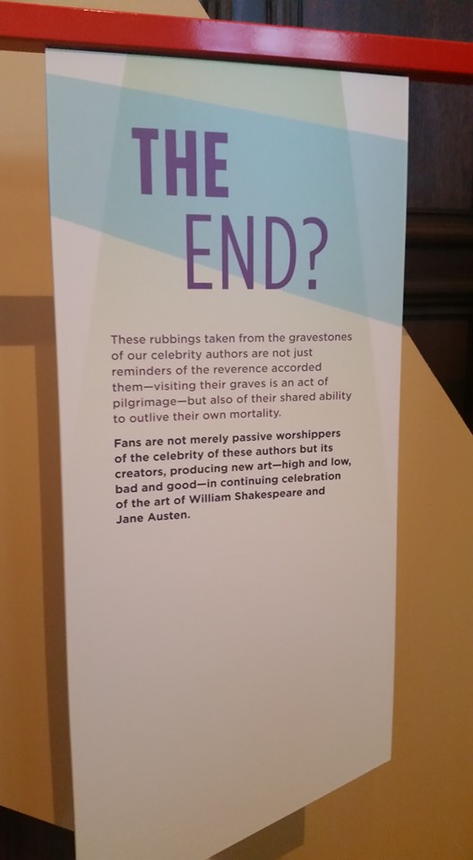 Will & Jane: Shakespeare, Austen, and the Cult of Celebrity is a delightful exhibit full of surprises. With 2017 marking the 200th anniversary of Jane Austen's death, her cult of celebrity is gearing up for even more movies, books, and products devoted to the author that many call Jane.