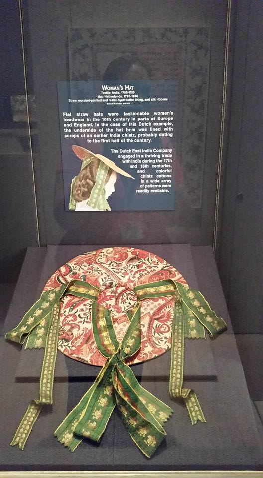 Hat c. 1780-1820. Cotton chintz used to line the inside of this fashionable straw hat.