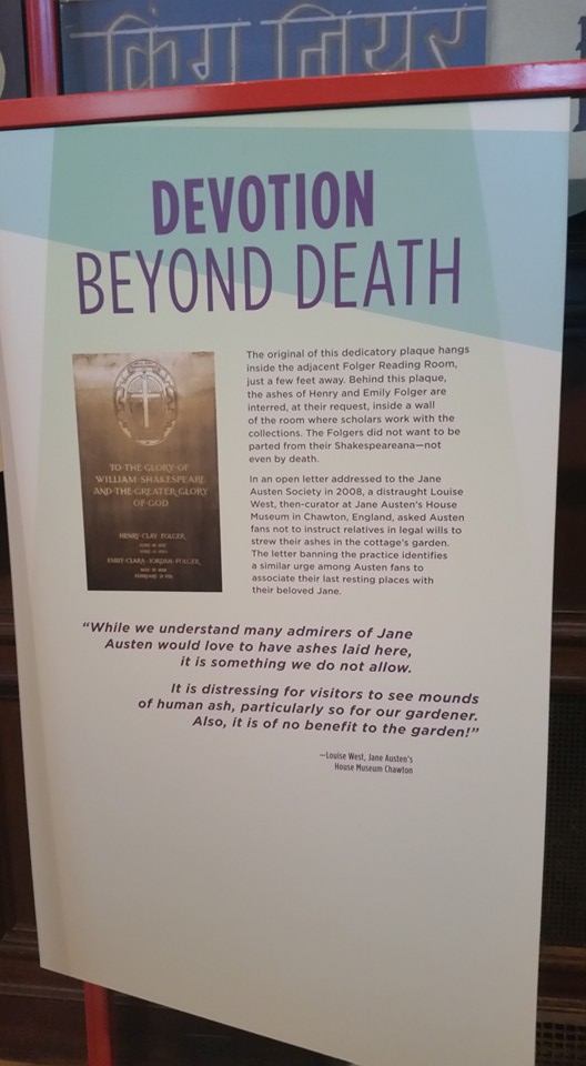Some fans have been so dedicated to their literary hero that they decided to spend all eternity with them. The Folger Shakespeare Library was created by Henry and Emily Folger who spent their lives and fortune to purchase rare items connected to William Shakespeare resulting in the Library. The Folgers who were childless, are interned in the reading room at the Library. The Jane Austen House Museum at Chawton had had a similar problem with devoted fans requesting that their ashes be scattered in the garden--much to the dismay of the gardener.