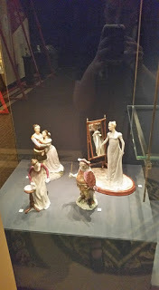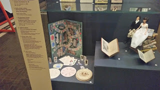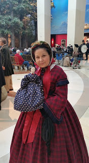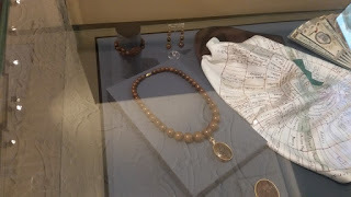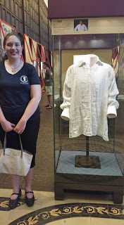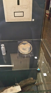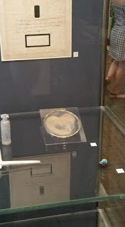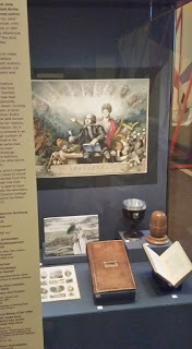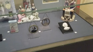 After the book signing I went over to the Abraham Lincoln Presidential Library and Museum to see my friend Pam Brown who brings Mary Lincoln to life. Along with visiting with Pam, I visited the Taper Gallery at the Museum featuring the gems of the institutions collection. On display, where Mary Lincoln's personal family china that she ordered after the 1864 election for the second term. It was very understated compared to the china ordered for the first term. The buff coloring appears peach under certain light unlike the bold solferino that Mary Lincoln picked for the first term. Also on display was Mary Lincoln's music box that she purchased after her husband's death. Following Abraham Lincoln's assassination, Mary never entered a theater again.