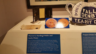 One of the exhibit's more unique items is President Warren G. Harding's wallet complete with lucky penny. Harding carried this 1901 Indian Head penny during the 1920 election. Harding won the election, but died in office in 1923.
