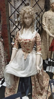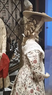 Gown c. 1785. This was my favorite gown in the exhibition. I love, love, love every part of this outfit. The wig, fichu, flowers, petticoat, and jewelry are reproduction.