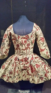 Jacket c. 1780. Another example of fabric being reused to reflect changing fashions. The jacket dates to the late 1770s to early 1780s, but the fabric dates to an earlier period.
