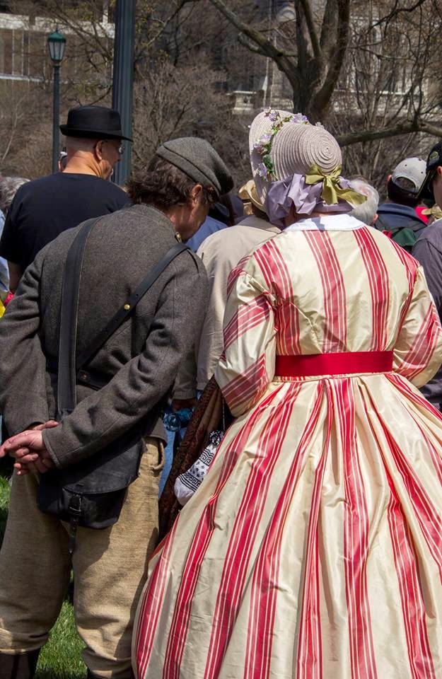 Last weekend I had the pleasure to be part of an historic event in Richmond commemorating the 150th anniversary of the Fall of Richmond and Emancipation. Part of what made the event special was that we were actually re enacting the events hour by hour on the actual days in which they took place. Even the weather was cooperating and was eerily similar to the weather 150 years ago. As part of the commemoration the National Park Service designed a Civil War flash mob with Civil War re enactors gathered at historically significant locations. For the weekend I played a southern Unionist based on Elizabeth Van Lew. It was a fun role to play, but at times not easy as at times it was intense dealing with the hostility of the pro-Confederate characters. I am a person who does not usually like confrontation and at times after engaging in an intense "argument" with the other re enactors I would find myself shaking like a leaf. I admire the bravery of Elizabeth Van Lew and the Richmond Unionists for following the dictates of their conscience in a less than welcoming atmosphere.