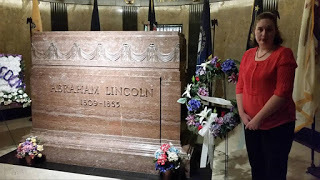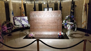 The next morning we arrived bright and early back at Oak Ridge Cemetery and was able to tour the tomb. Since 2011 every time I visit the tomb I bring flowers for Abraham and Mary Lincoln and was allowed to lay the flowers in front of President Lincoln's cenotaph. There were already several arrangements commemorating the anniversaries of the passing of Tad and Mary Lincoln on July 15th (Tad) and July 16th (Mary). President Lincoln in buried in the burial room near the massive marble cenotaph and is protected from grave robbers by several tons of concrete and steel. Mary Lincoln and three of her sons (Eddie, Willie, and Tad) and also entombed in the burial room in a wall crypt across from the President's.
