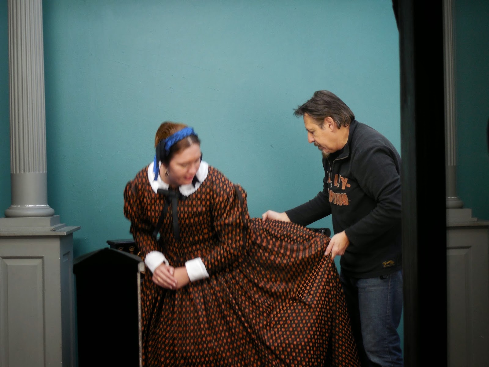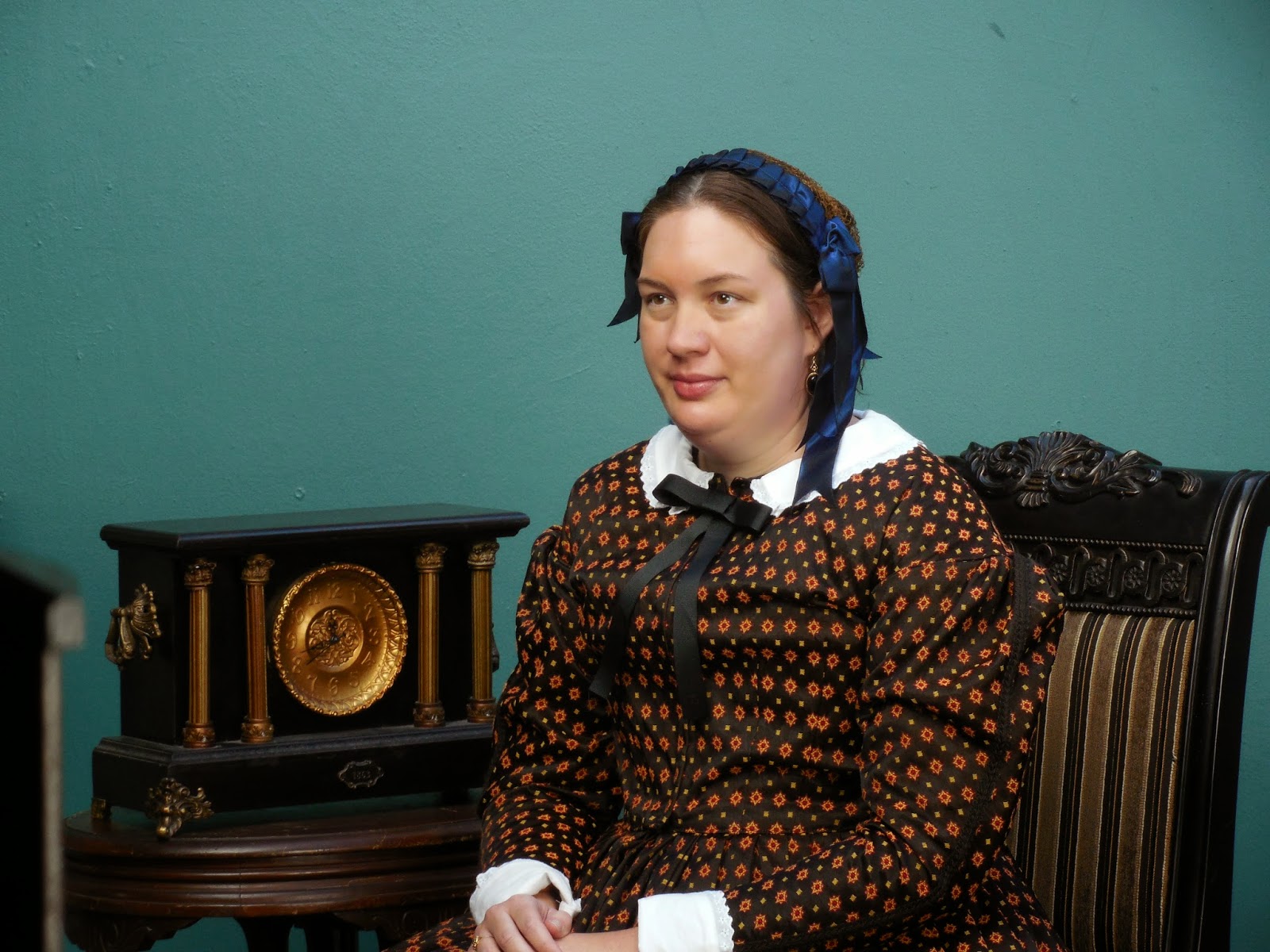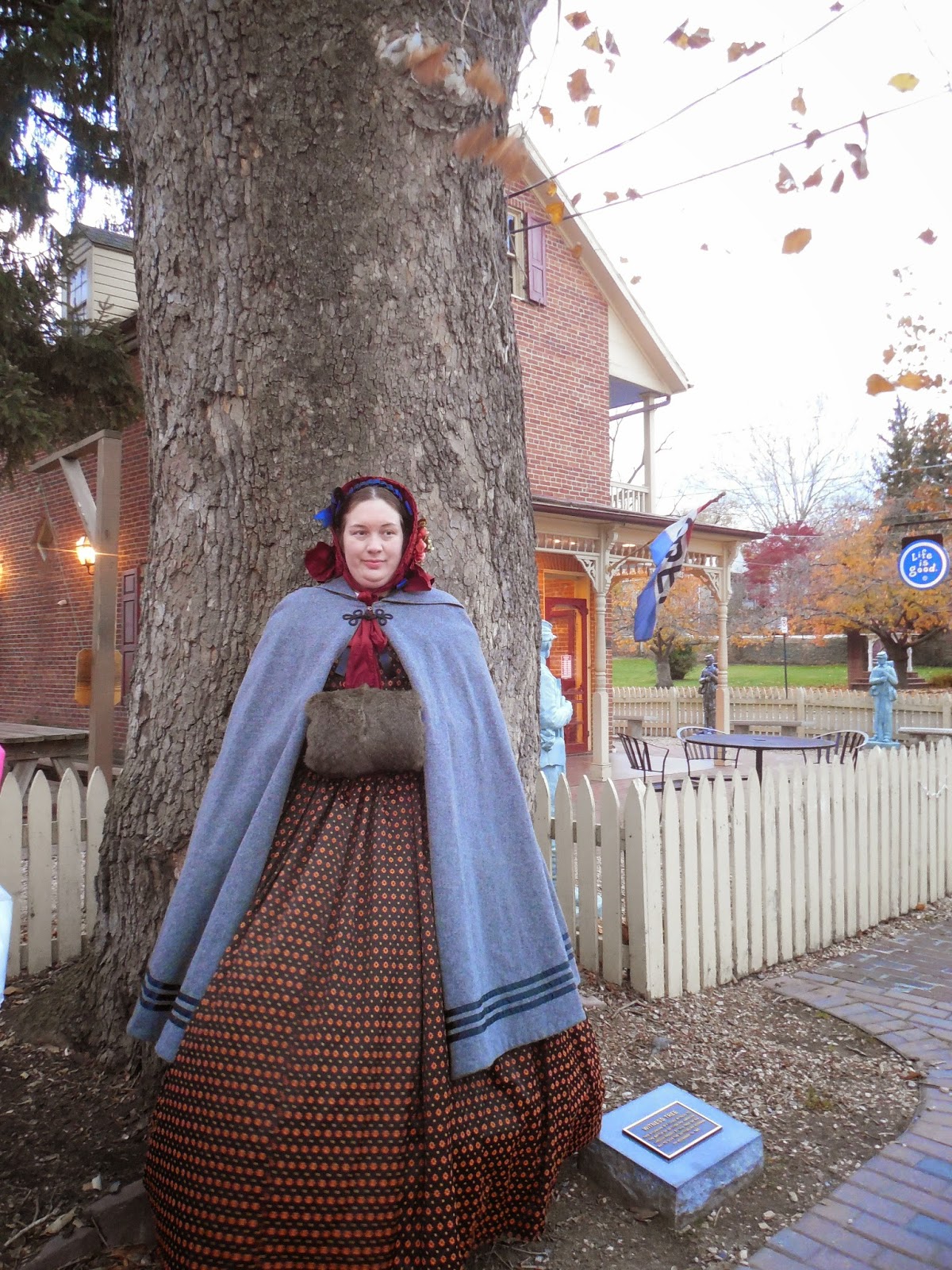 Upon arriving in Gettysburg on Friday, I got dressed as quickly as possible in my 1860s clothing. Fortunately I was warm in my winter dress, the wool cloak, leather gloves, rabbit fur muff, and long johns kept me warm.