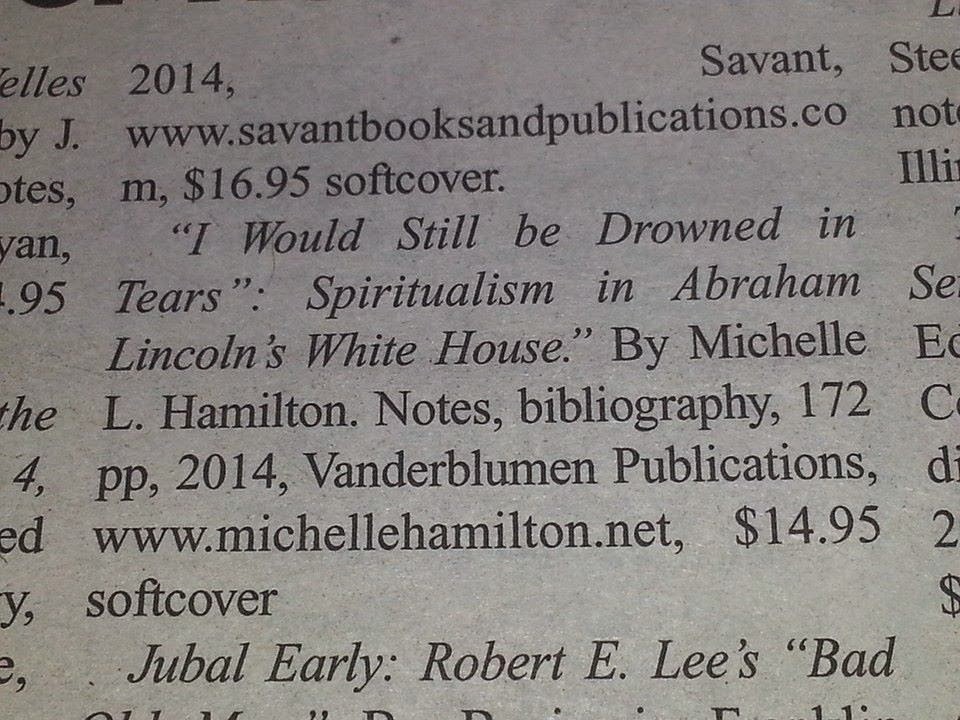 This Saturday, September 27, I will be appearing at ParAmeriCon from 9:00 am to 5:00 pm where I will be selling (and signing) ''I Will Still Be Drowned in Tears": Spiritualism in Abraham Lincoln's White House