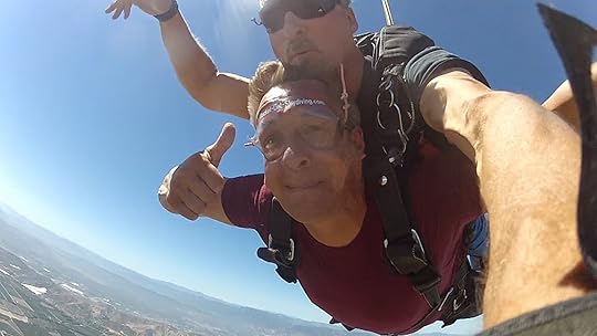 (Here's my hubby on his tandem jump)Are you a risk taker? Do you live vicariously through someone else? Or do you feel like someone else lives vicariously through you? Have you ever jumped out of an airplane? Is it on your bucket list?