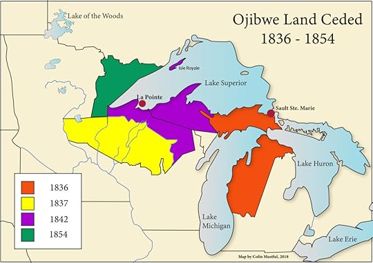 Lands ceded by the Ojibwe, 1836–1854.In the late 1840s and early 1850s, the Lake Superior Ojibwe argued for permanent homes within the so-called “ceded territory” of northern Wisconsin and Michigan. This included trips to Washington DC in 1849 and 1852. During this time, the Ojibwe were told that they had to move west into the “unceded territory” of northern Minnesota. But, the Ojibwe wished to remain living on their homeland just as they had been promised they could during the La Pointe Treaty of 1842.