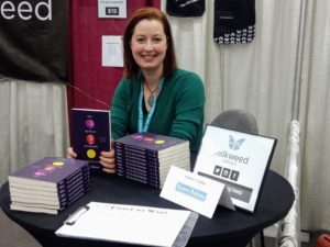 MFA faculty member Karen Babine signing copies of her new book, All the Wild Hungers.