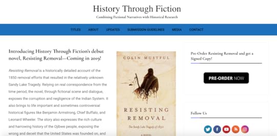 In combination with the upcoming release of his new novel, Resisting Removal, author Colin Mustful is proud to announce the launch of his independent press, History Through Fiction. Using his experience self-publishing four novels and his knowledge gained through his creative writing program at Augsburg University, Mustful seeks to publish high quality fiction that is rooted in accurate and detailed historical research. The goal of History Through Fiction is to provide readers with a compelling narrative that can also act as a valuable historical resource, much like the novels Mustful has already published. To find out more, you can visit his new website at historythroughfiction.com.