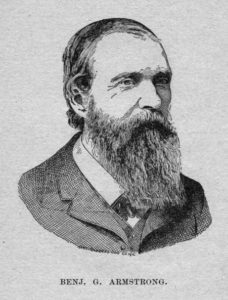 Benjamin Green Armstrong. Image from the historical blog Chequamegon History as it appears in Armstrong’s memoir.Benjamin Green Armstrong was trader, store owner, logger, farmer, and interpreter who lived among the Lake Superior Ojibwe for many years. He is most well known for his memoir, Early Life Among the Indians, which was published in 1892. In it, Armstrong gave a detailed account of the Ojibwe delegation to Washington DC in 1852 to meet with President Millard Fillmore. The delegation sought the support of the president in their efforts to countermand the Removal Order of 1850 which resulted in the Sandy Lake Tragedy. Armstrong’s memoir also recounted important treaties, described the arrival of settlers, miners, and loggers, and described Ojibwe law, customs, religion, culture, language, and history.
