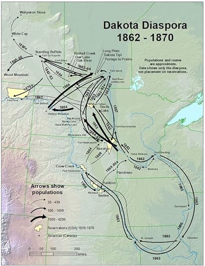 Map of the Dakota diaspora from 1862-1870, courtesy Bob Werner. From the Minnesota Historical Society.