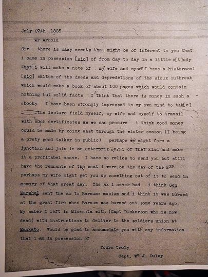 On December 26, 1862, Captain William J. Duley swung the ax that cut the rope of the gallows, simultaneously ending the lives of 38 Dakota men for their roles in the U.S. – Dakota War of 1862. Duley, who at the time believed his entire family had been killed by the Dakota, joined the team of men who erected those gallows and was assigned as the executioner. In a letter to a newspaper editor written July 27, 1885, Duley stated that he supervised the gallows and that he was “known to be the person who cut the rope and launched the 38 demons into eternity.”