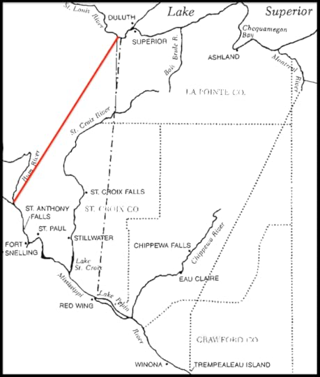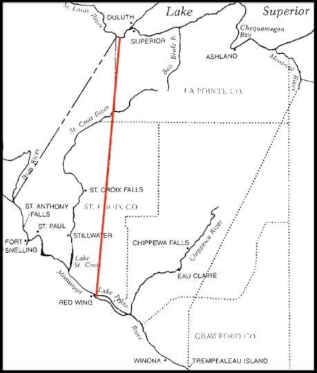 “…thence through the centre of Lake Superior to the mouth of the St. Louis River; thence up the main channel of said river to the first rapids in the same, above the Indian village, according to Nicollet’s map; thence due south to the main branch of the River St. Croix; thence down the main channel of said river to the Mississippi . . .”