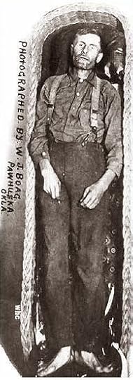 Elmer McCurdy on display at thePawhuska, Oklahoma, mortuary.That would have been the end of a less-than-illustrious career for most outlaws, but Elmer McCurdy’s career was only beginning.