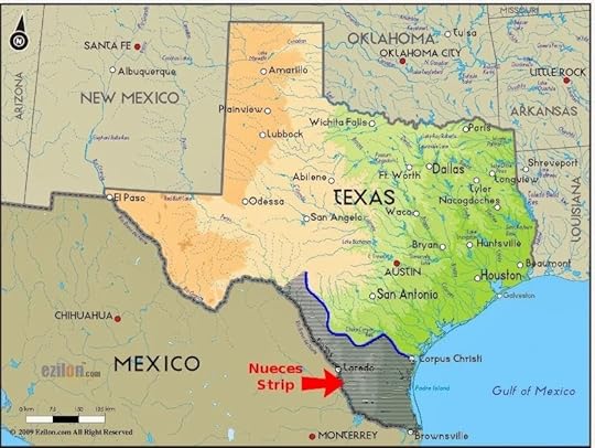 While Texas and Mexico were carefully avoiding one another in the disputed territory, outlaws, rustlers, and other lawless types moved into the patch between the Nueces River and the Rio Grande. After all, no respectable outlaw ever lets a perfectly good blind spot on the law-enforcement radar go to waste. The area, 150 miles wide by about 400 miles long, came to be known as the Nueces Strip.